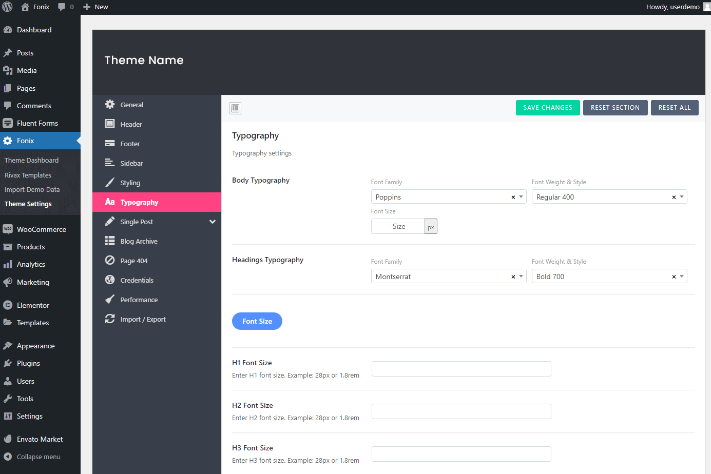 Global typography like font family can be setup in Kalisa > Theme Settings > Typography tab.